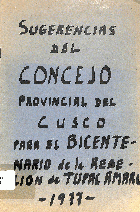 Sugerencias del Concejo Provincial del Cusco para el Bicentenario de la Rebelión de Tupac Amaru 1977 /